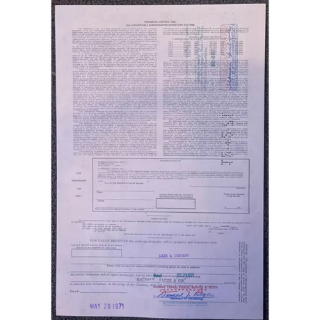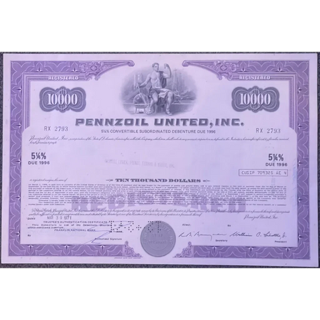 Rare Purple Pennzoil Stock Certificate Unearths...