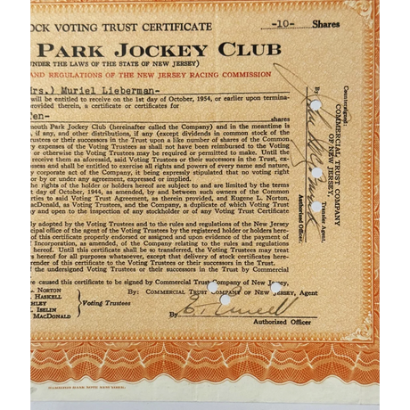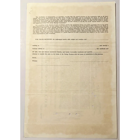 Rare Monmouth Jockey Club Stock Certificate fro...