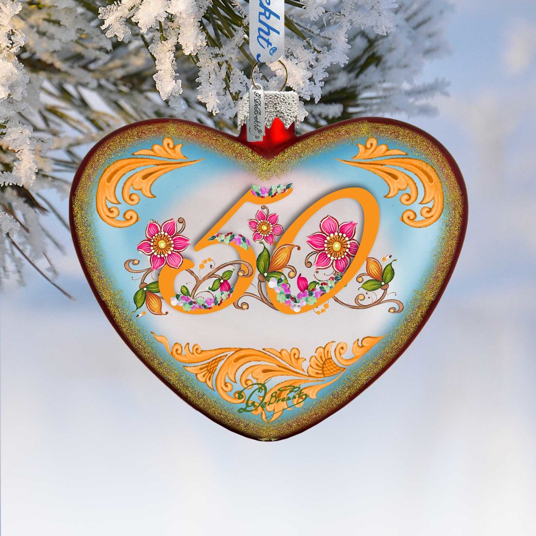 Adorno de cristal con forma de corazón del 50.º aniversario de G. DeBrekht - Decoración navideña - 753-006