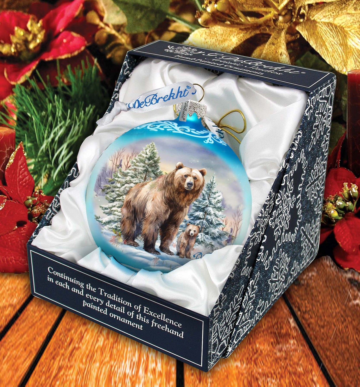 Amor para todas las estaciones: Adorno de cristal con forma de bola de oso grizzly de G. Debrekht - Decoración navideña con animales salvajes - 73382
