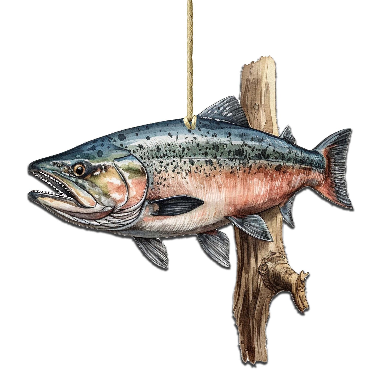 Adornos de madera de salmón rojo de Alaska de G.Debrekht - Decoración navideña con temática de vida silvestre - 8710109-3