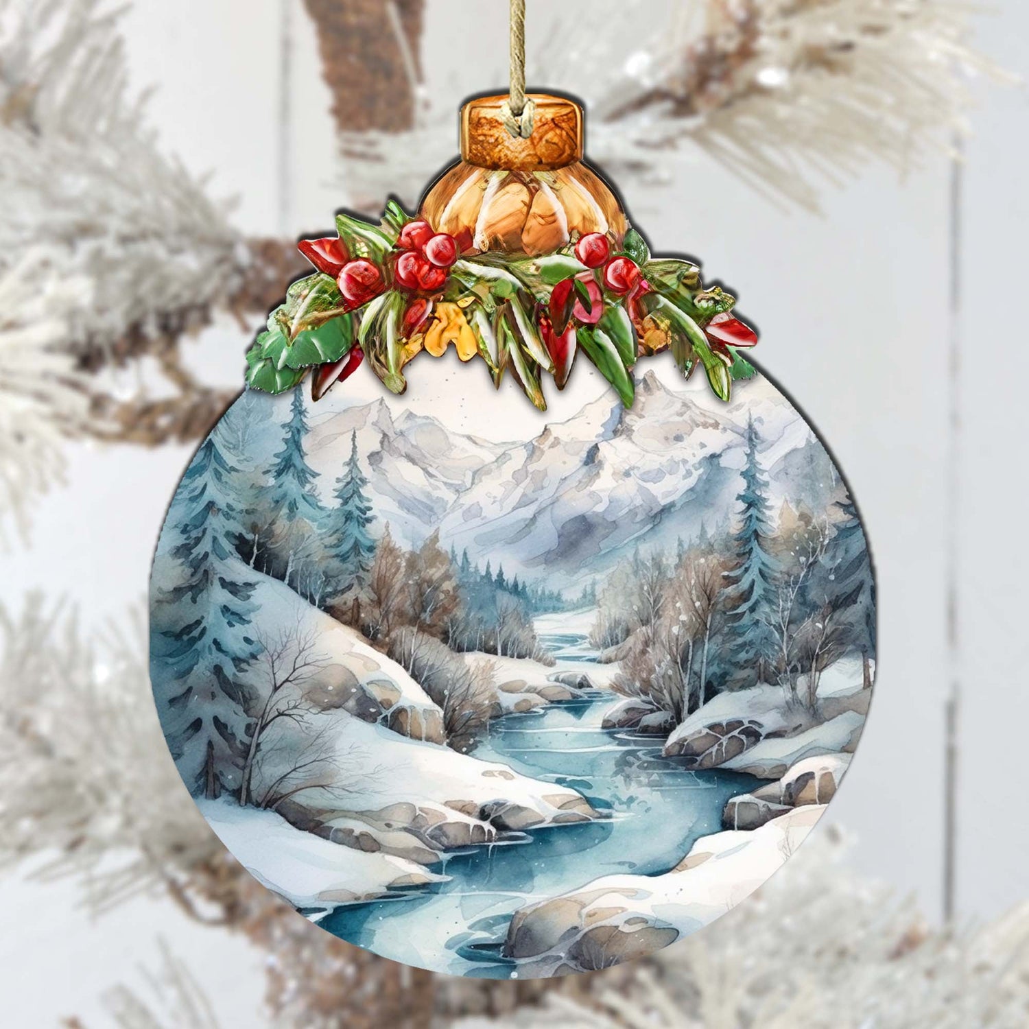 Adornos de madera "La majestuosidad de las montañas de Alaska" de G.Debrekht - Decoración navideña con temática de vida silvestre - 870037