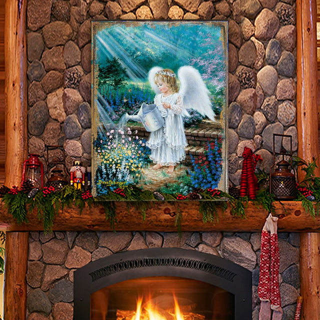Arte mural de madera "El regalo de un ángel" de D. Gelsinger - Decoración navideña para la Natividad - 95661B-9708