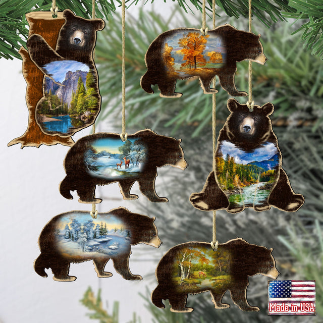 Juego de 6 adornos de madera Bearly Friends de G. DeBrekht - Decoración navideña con temática de vida silvestre - 8198215-S6