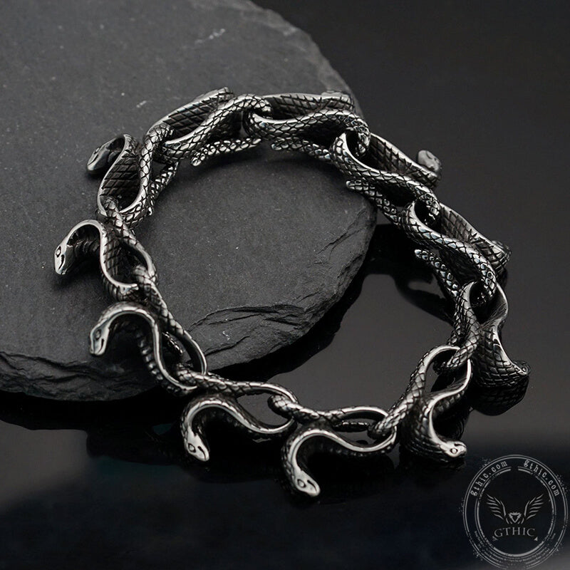 Introducing our Cobra Snake Head Stainless Steel Bracelet, a symbol of power and transformation. Crafted with precision, it features a striking cobra head design, capturing the essence of fierce determination. Elevate your style with this bold accessory, embodying the strength and resilience of the cobra.