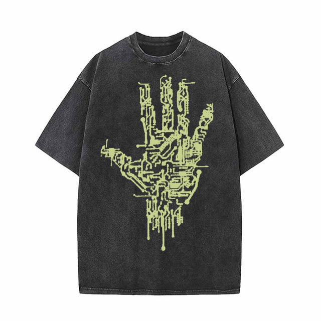 Computer Circuit Board Hand Vintage Washed T-shirt