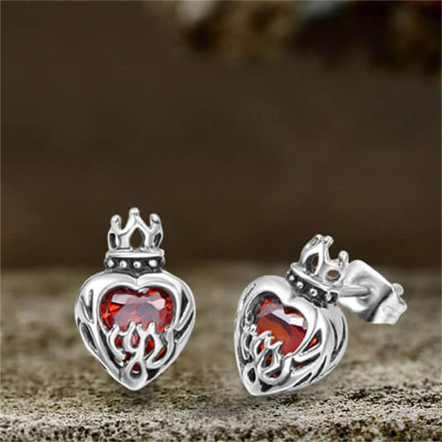 Crown Gem Stainless Steel Gothic Stud Earrings