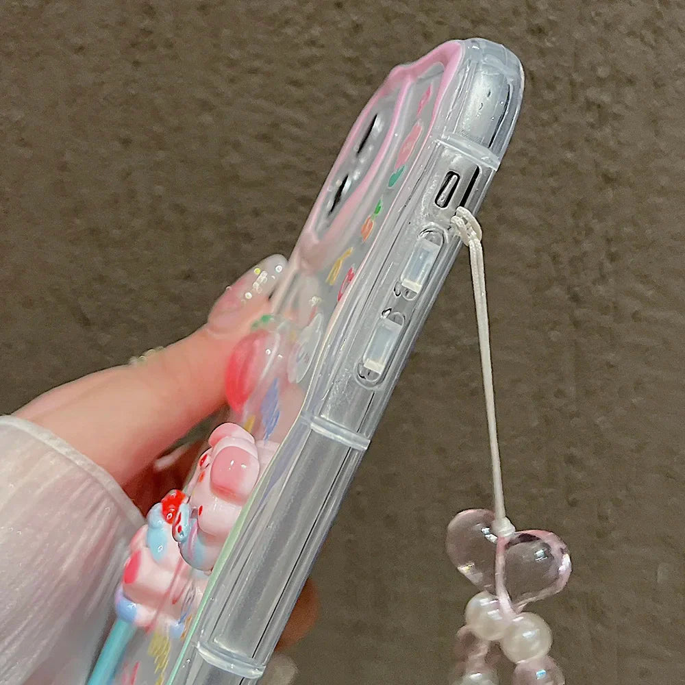 Cute 3D Pig Bracelet Wrist Chain Lanyard Clear Soft Phone Case For iPhone