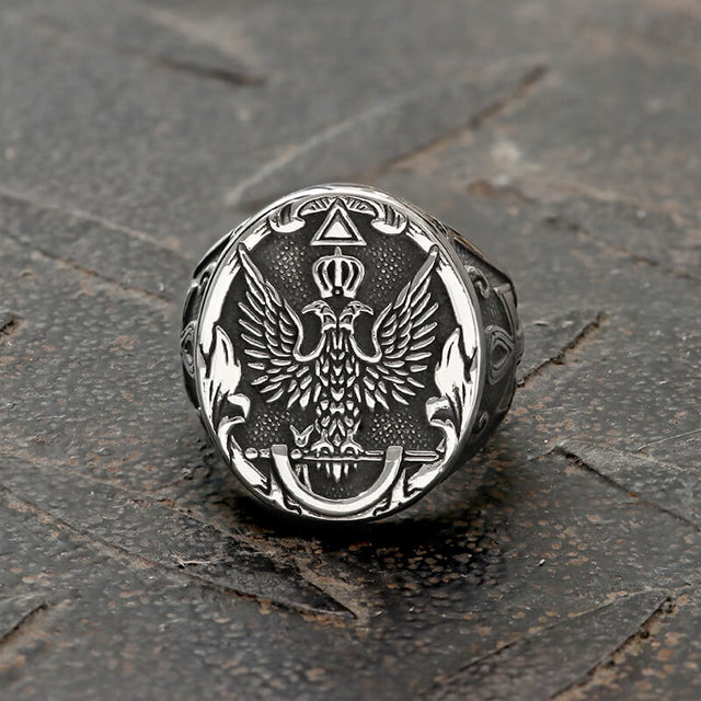 Double-Headed Eagle Ankh Stainless Steel Ring