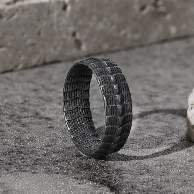 Solid and vintage, this ring has the appearance of a dragon's backbone with neatly arranged scales on the inside. The dragon is the symbol of fire and passion, which encourages you to find your passion in life and take risks to develop your strength and power. If a dragon shows up anywhere for you, it's a sign you're on your way to a big spiritual awakening or transformation.
