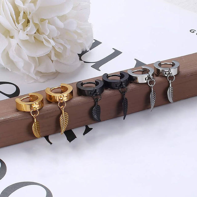 These Feather Stainless Steel Hoop Earrings offer a timeless style that adds a polished touch to any look. Crafted from durable stainless steel, they feature beautiful feather designs for a unique look that will last. Perfect for day or night wear!