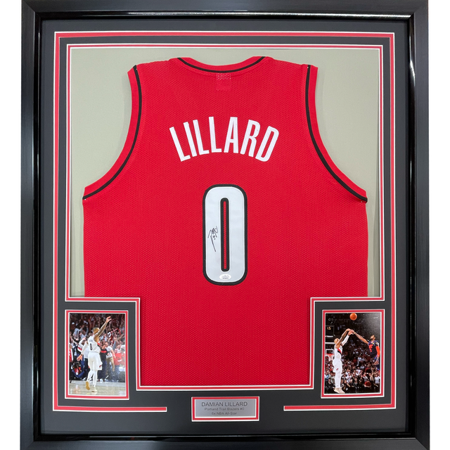 Camiseta de baloncesto enmarcada, autografiada y firmada por Damian Lillard, 35 x 39, color rojo Portland, JSA COA