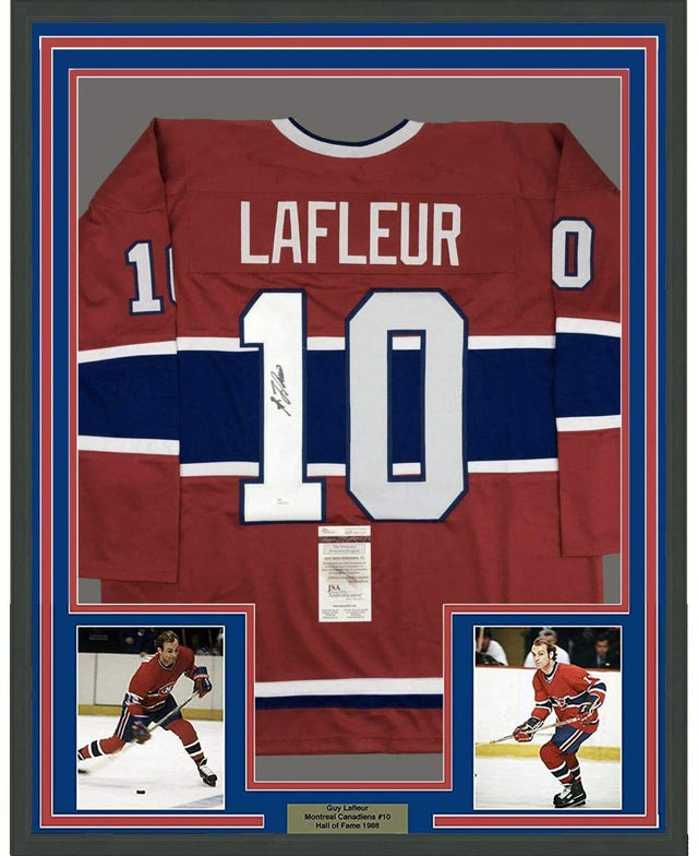 Camiseta de hockey roja de Montreal, enmarcada, autografiada y firmada por Guy LaFleur, 35 x 39, JSA COA