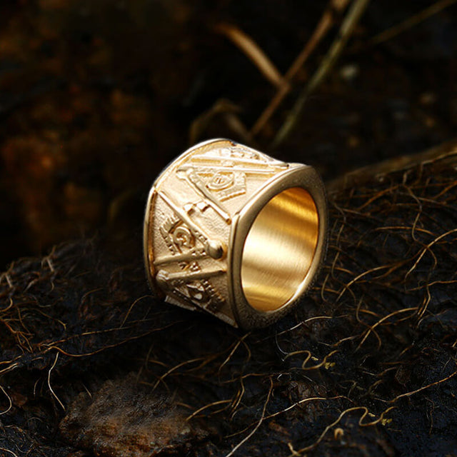 The most important element of this ring is the Freemason symbol. This symbol consists of three core elements: the square, the compasses, and the letter “G”.