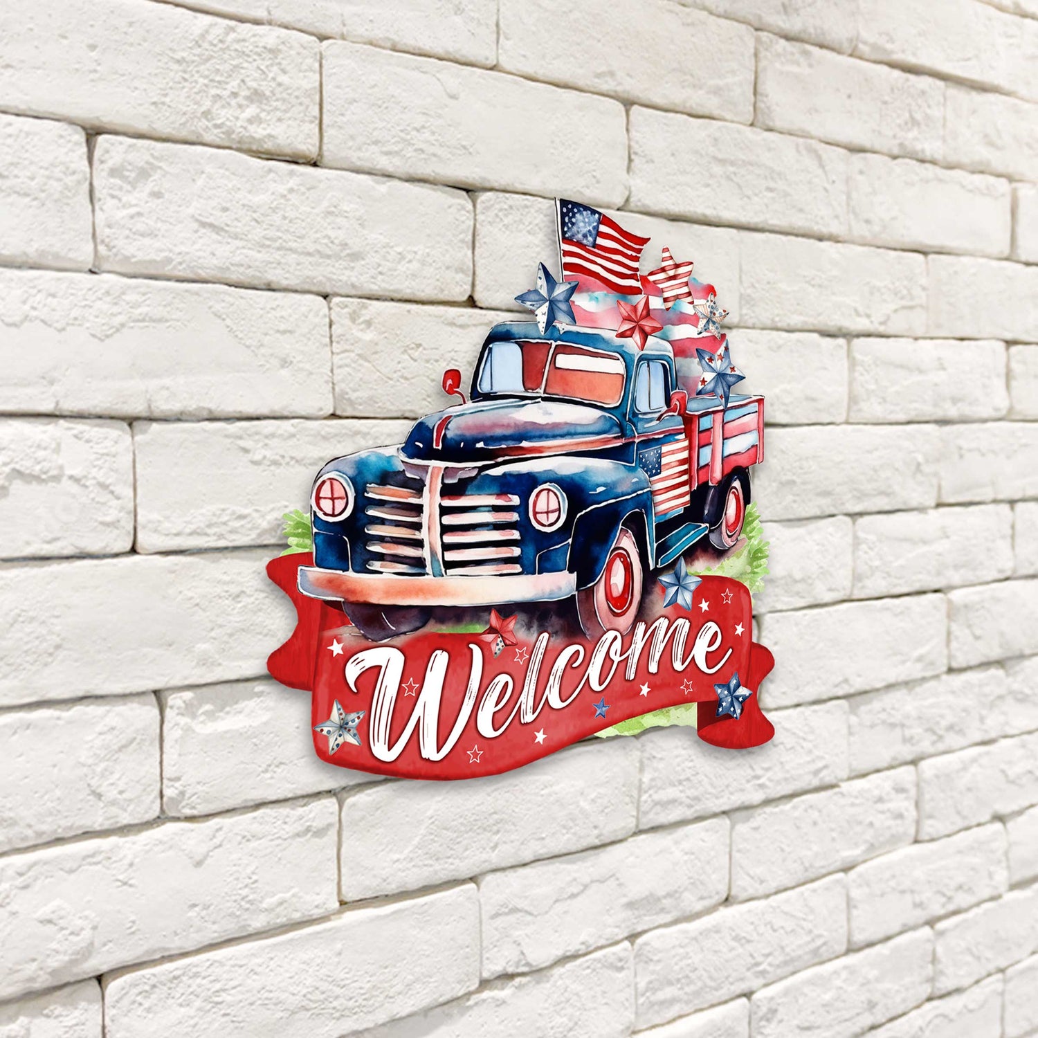 Reciba a sus invitados con un estilo patriótico con este letrero de bienvenida de madera ultraduradero. Fabricado con madera contrachapada de alta calidad, este letrero presenta un diseño de bandera estadounidense y una paleta de colores rojo y blanco. ¡Este letrero impresionará y será el accesorio perfecto para su entrada principal o porche!
