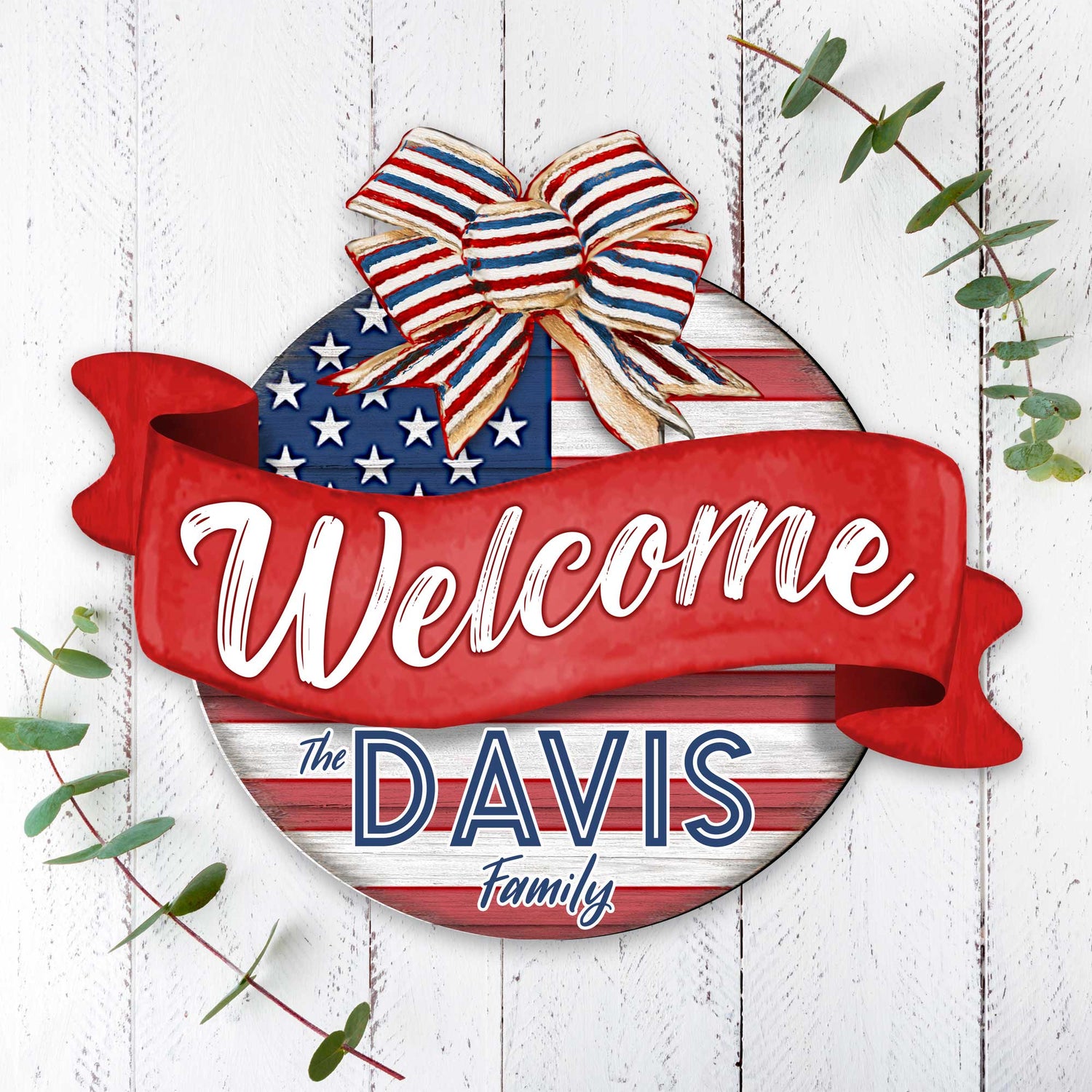 Letrero de bienvenida para puerta de entrada, nombre personalizado, bandera estadounidense, corona de porche, letrero de bienvenida familiar para entrada principal - Decoración de porche delantero de madera - 933103HC está agotado y se enviará tan pronto como vuelva a estar disponible.