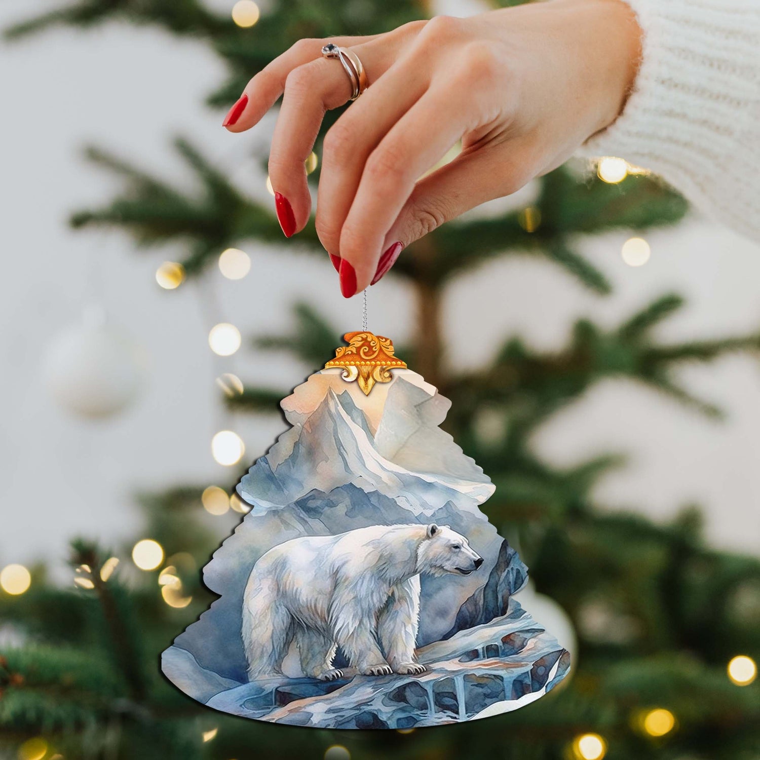 Adornos de madera para árbol de oso polar con cresta de escarcha de G.Debrekht - Decoración navideña con animales salvajes - 870002
