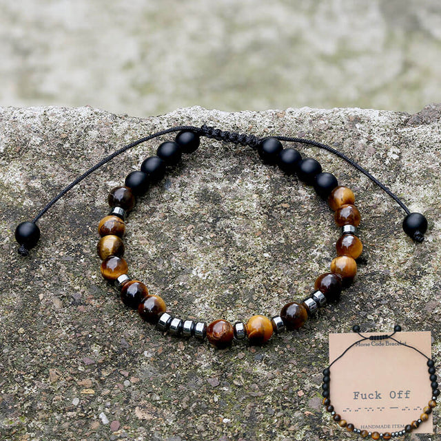 Fuck Off Tiger Eye Morse Code Braided Bracelet