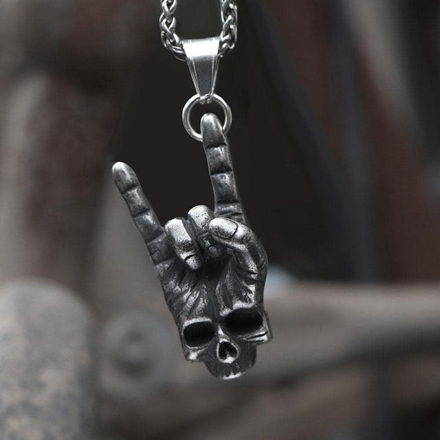 Merging a love of rock music and Gothic skull, our Dark Rock Skull Pendant will inspire the rocker in you. It is made up of two different rock gestures and skull heads. The undead skull design is cast in stainless steel that gives a worn and weathered appeal. The skulls are designed into the classic rock gesture. Prepare to survive the apocalypse in style with the macabre design of the Rock Skull Men's Necklace. Add it to your Gothic skull jewelry collection today!