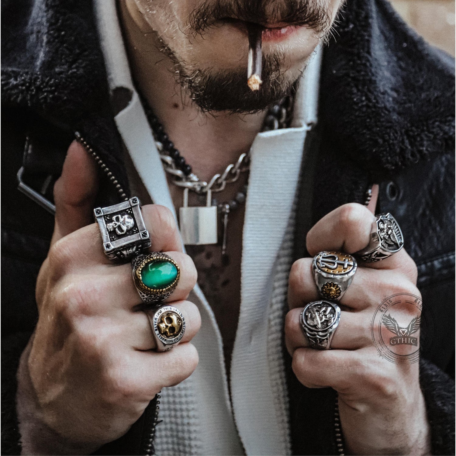 This gemstone-themed ring is just what you need to complete the look of your accessories. The ring's beautifully symmetrical side pattern and center stone setting create a vintage and gothic look. Sturdy and durable, we offer top-notch jewelry that won't lose its luster over time. Get yours today!