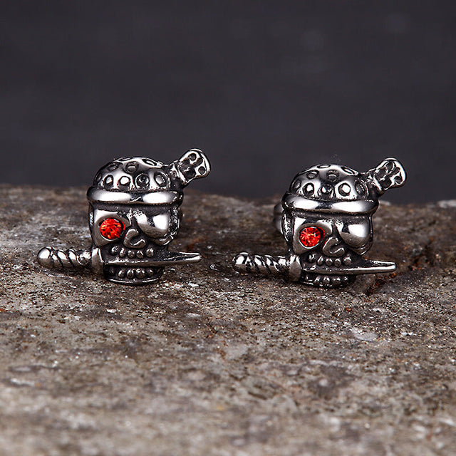 Gothic Skull Pirate Biting Sword Stainless Steel Earrings