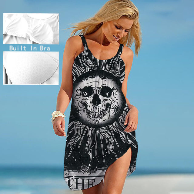 Gothic Skull Sun Moon Print Built In Bra Dress