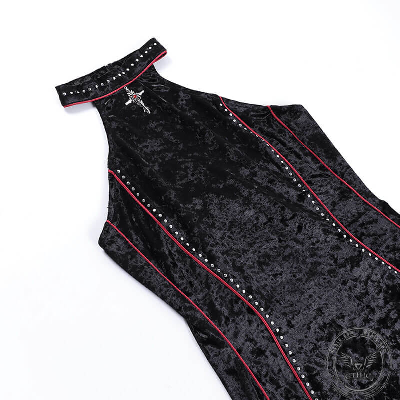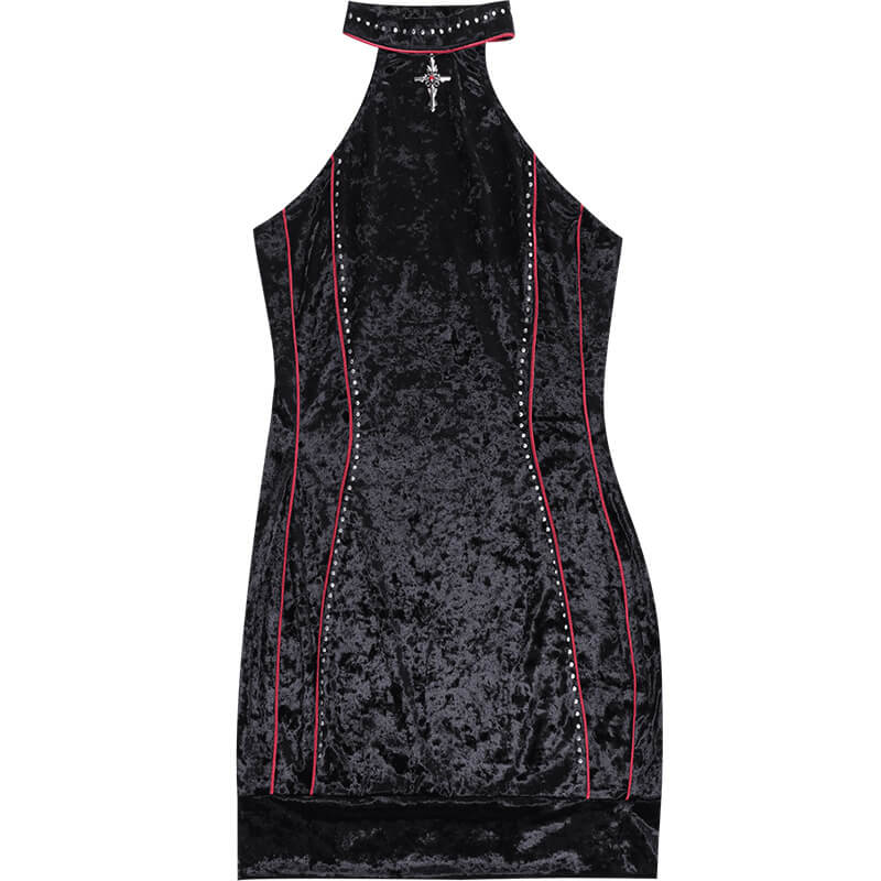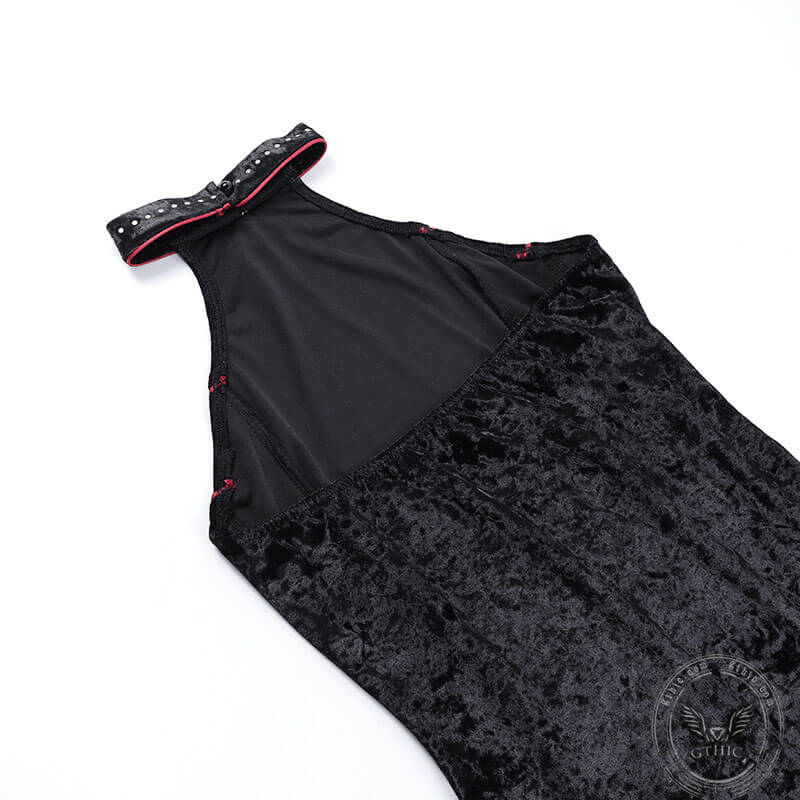Gothic Sleeveless Halterneck Velvet Dress - Dress / S está agotado y se enviará tan pronto como vuelva a estar disponible.