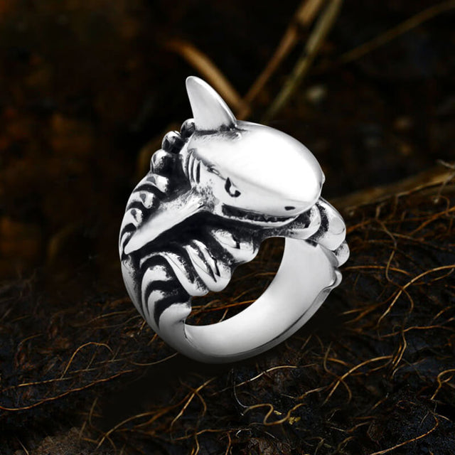 Great Shark Ocean Wave Stainless Steel Animal Ring