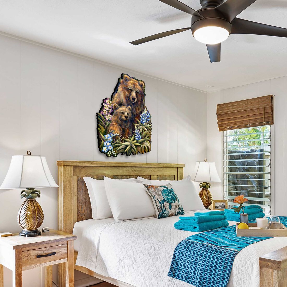Grin & Bear it - Arte mural de madre y cachorro oso grizzly de J. Bergsma - Decoración navideña de vida silvestre - 8591947W-JB