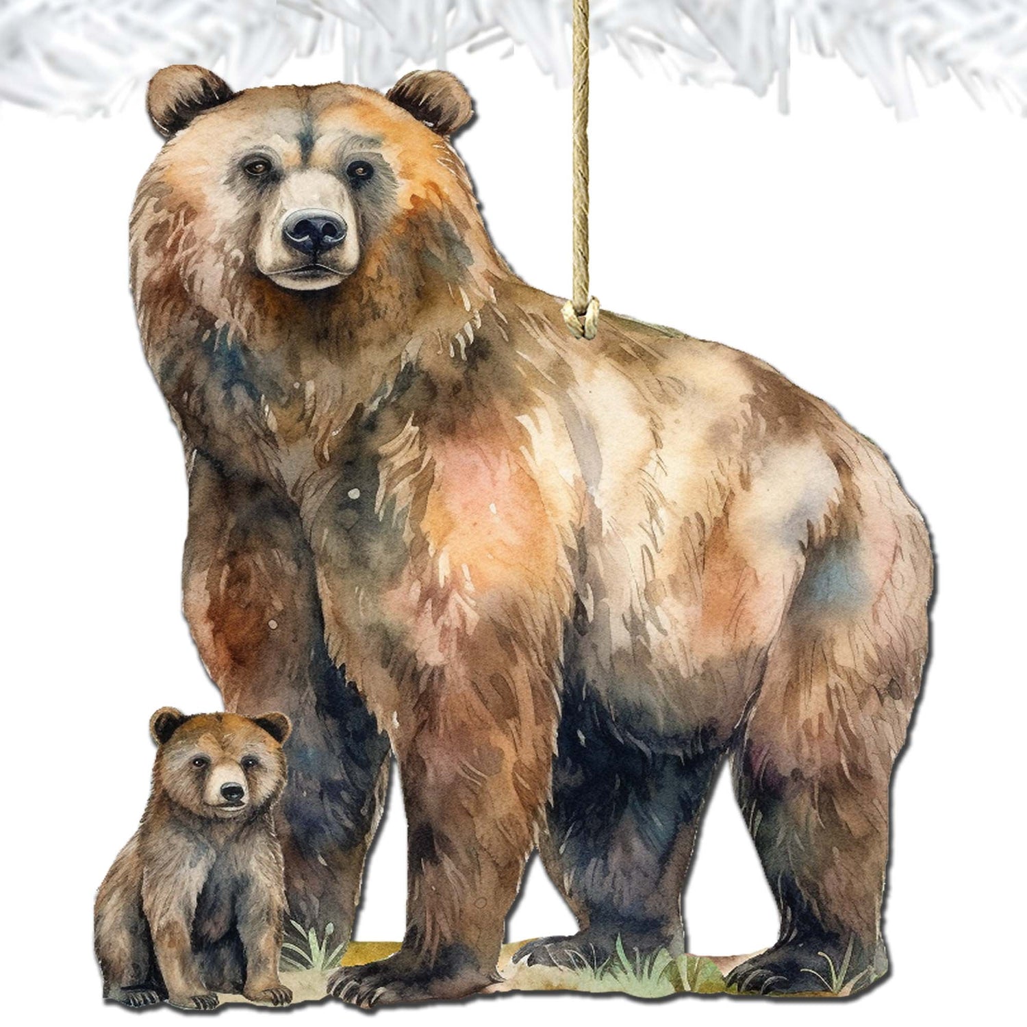 Adornos de madera de oso grizzly con cachorro de G.Debrekht - Decoración navideña con temática de vida silvestre - 8710105-2