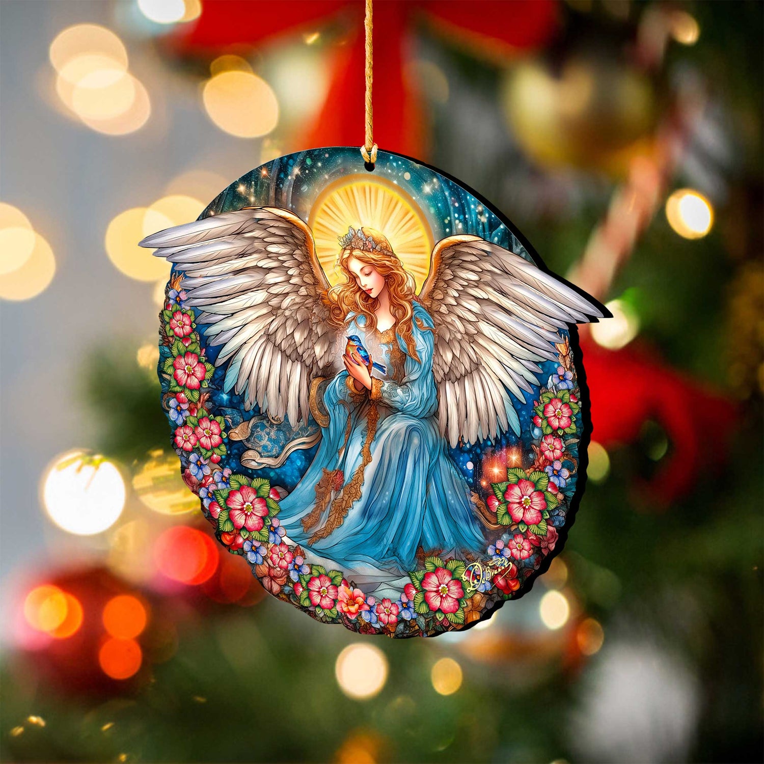 Adornos navideños de madera del Ángel de la Guarda de la Serenidad de G. DeBrekht - Decoración navideña para la Natividad - 8652806