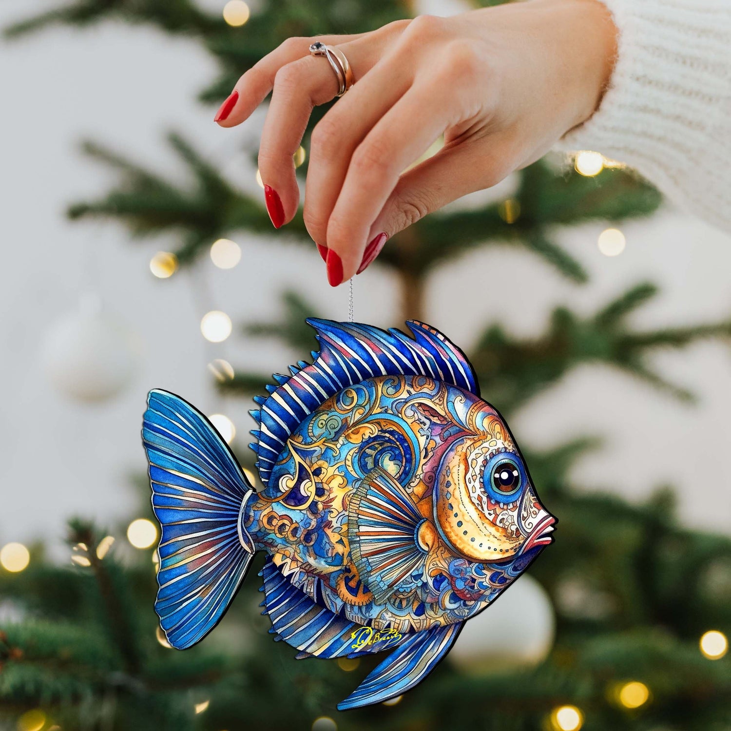 Adornos costeros navideños - Adornos de madera con forma de pez turquesa de G.Debrekht Coastal Holiday Decor - 8688305
