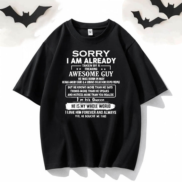 I Am Already Taken By A Freaking Awesome Guy T-shirt - Black / S (Shoulder 52 cm) está agotado y se enviará tan pronto como vuelva a estar disponible.