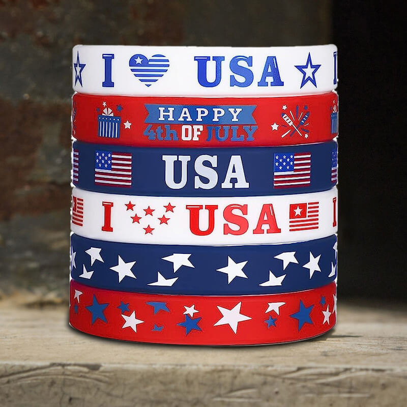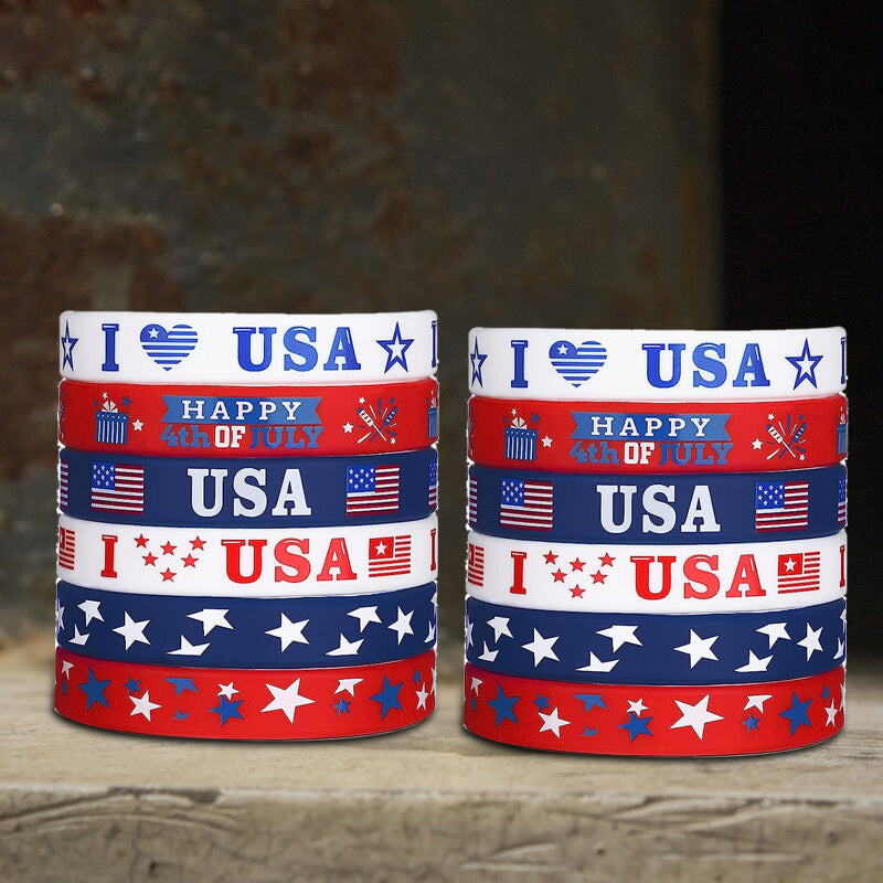 Celebrate Independence Day in style with the Independence Day Celebration Silicone Bracelet. Made from durable and flexible silicone, this bracelet features vibrant colors and patriotic designs, such as the American flag or fireworks. It's perfect for showing your love for your country and adding a festive touch to your outfit. The bracelet is comfortable to wear and easily adjustable to fit most wrist sizes. Wear it proudly and join in the spirit of Independence Day!