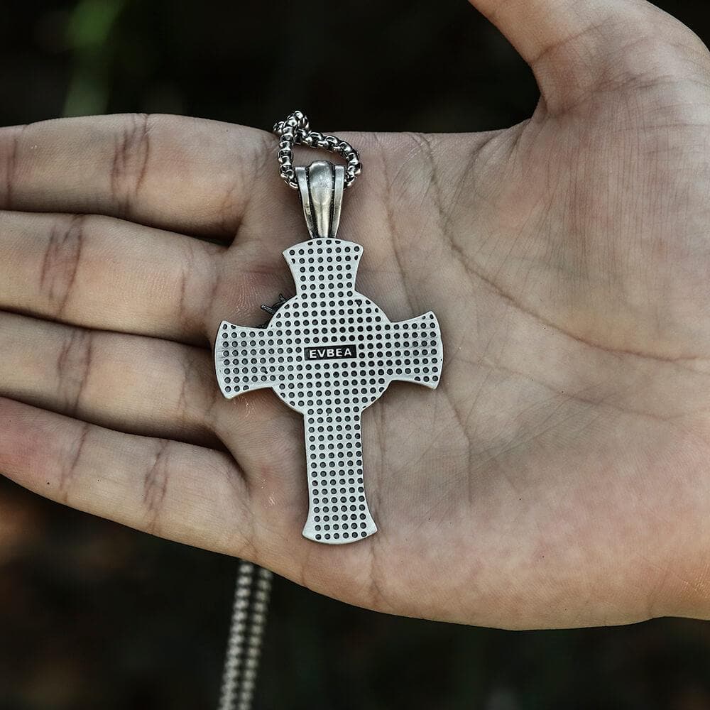 INRI stems from the Latin phrase"Iesus Nazarenus Rex Iudaeorum'' meaning "Jesus of Nazareth, King of the Jews". This was the notice Pontius Pilate nailed over Jesus as he lay dying on the cross. It now signifies that a true Christian lies there. Tin is the fourth rare metal after platinum, gold, and silver. It is not easy to oxidize and is harmless to the human body. It is called a green metal. Many Christians like to wear a cross to show their faith as well as to use it to match outfits.