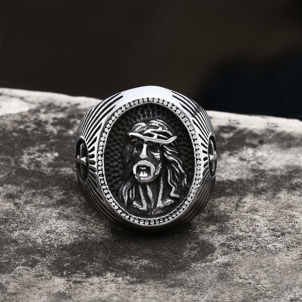 This is a very popular large ring and it is perfect for a devout Christian or a person seeking a spiritual blessing. Teased with delicate portrait, you get a few highlights that break that shine up a bit. Great styled ring. The whole ring is exquisite in workmanship and delicate in carving. Get yours today!