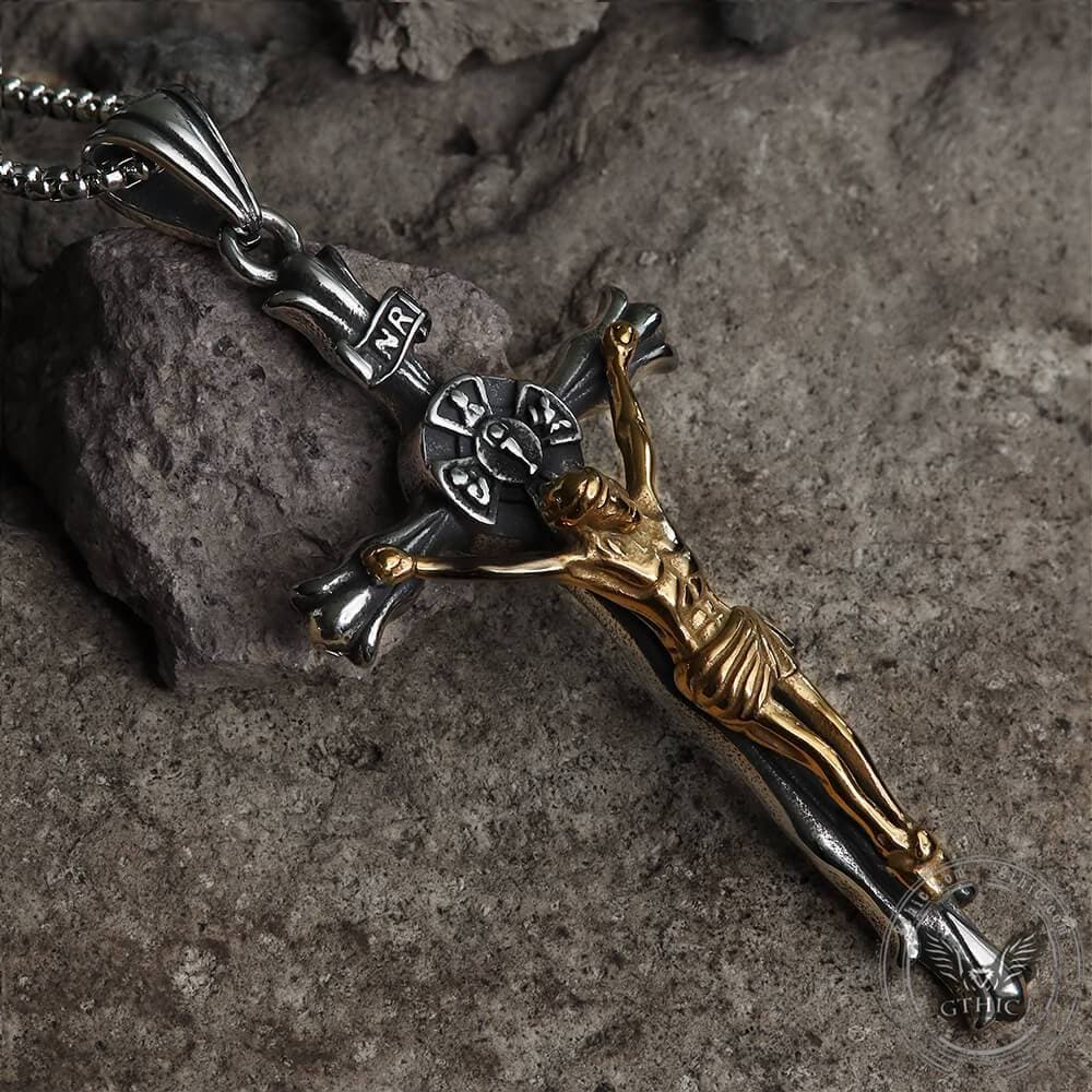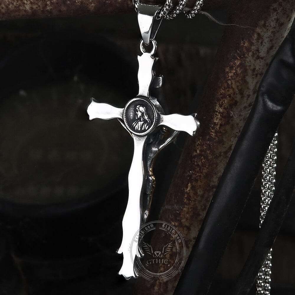 The front of this pendant is the crucifixion of Jesus, and the other side is a god. Jesus was crucified to redeem the world and resurrected on the third day. The meaning of Jesus' suffering is to overcome death, so for Christian, death is no longer terrible. In fact, The crucifixion of Jesus is to redeem sinners and represents God's love and salvation. God is always caring for you.