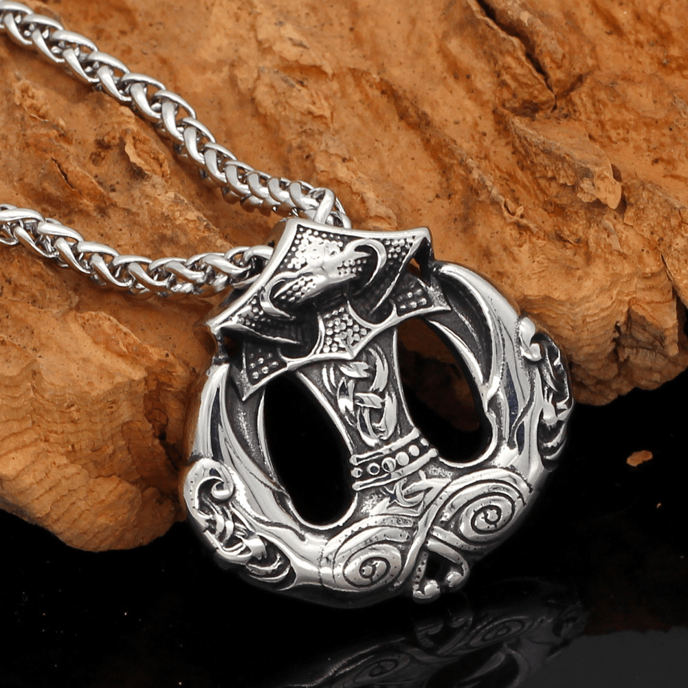 Mjolnir Raven Stainless Steel Viking Pendant