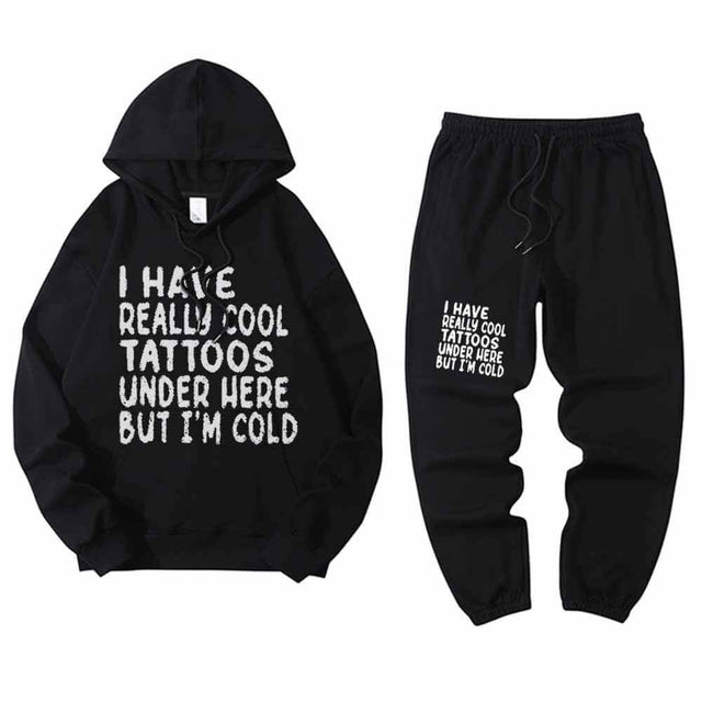 Multicolor I Have Really Cool Tattoos Crew Collar Hoodie Pants Set