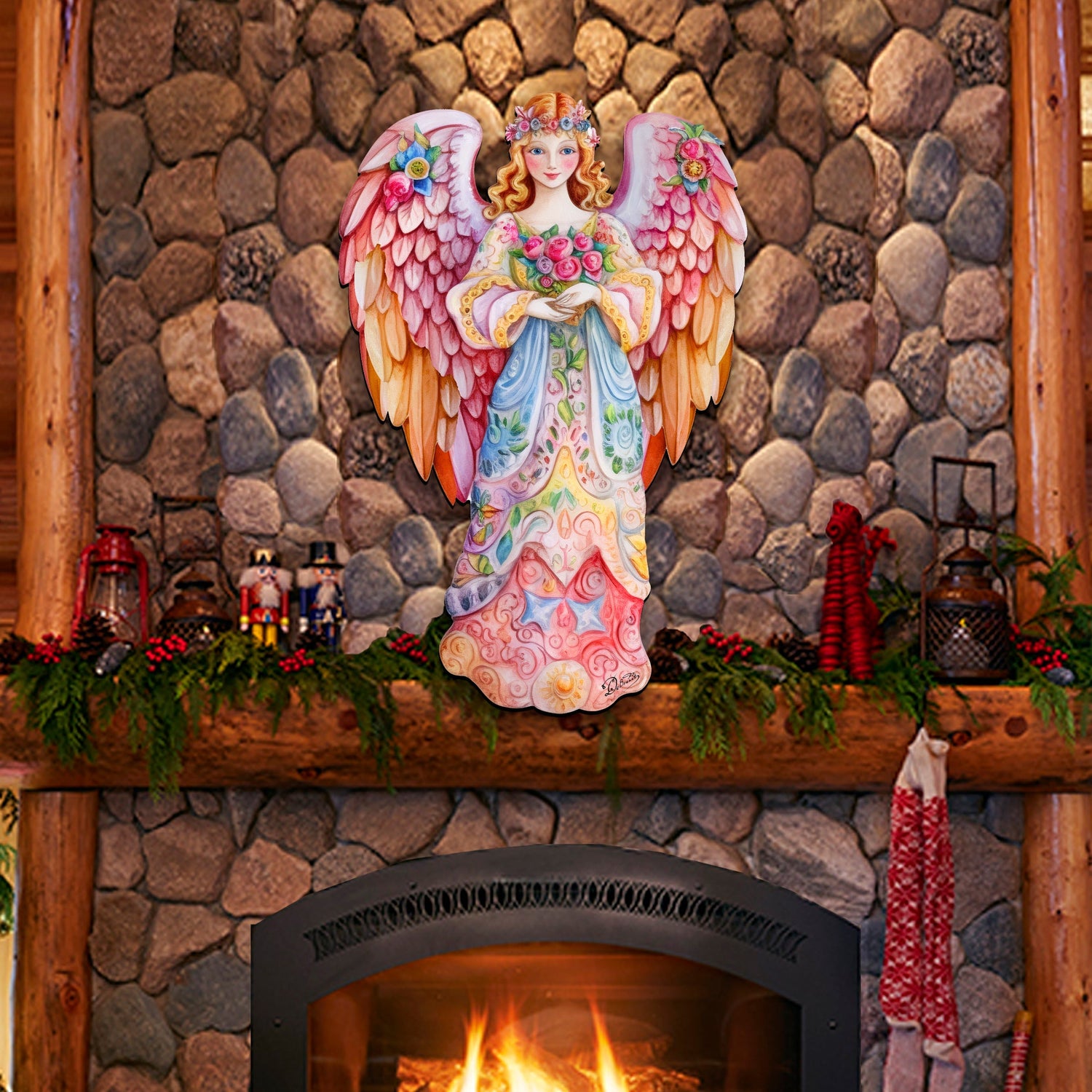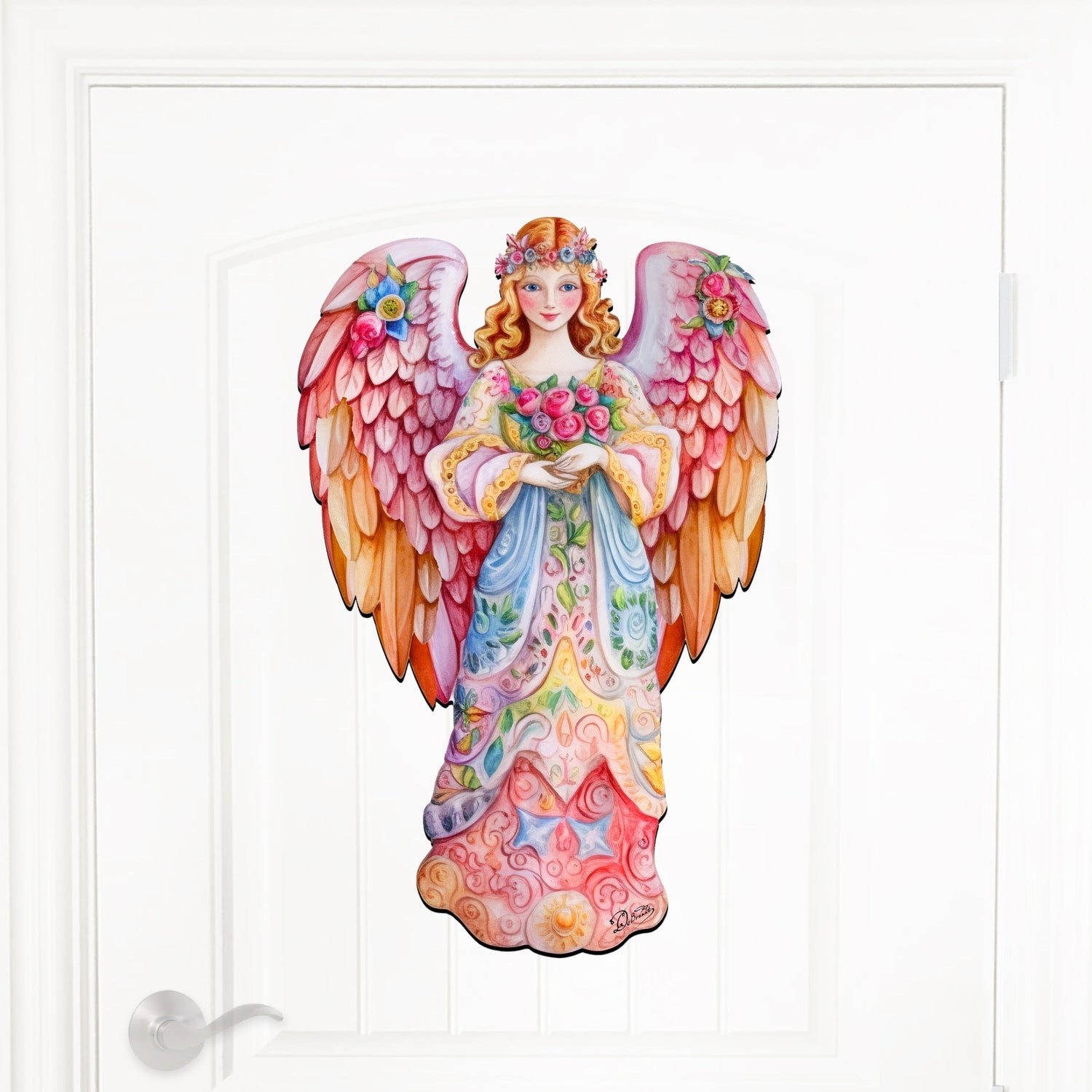 Dale la bienvenida a la temporada navideña con la decoración navideña para puerta "Ángel Floral Rosa" de G. Debrekht. Esta obra de arte festiva dejará una huella hermosa y duradera en la decoración de tu hogar. Elaborada con detalles intrincados y coloridos, esta decoración navideña iluminará tu espacio con una cálida bienvenida.