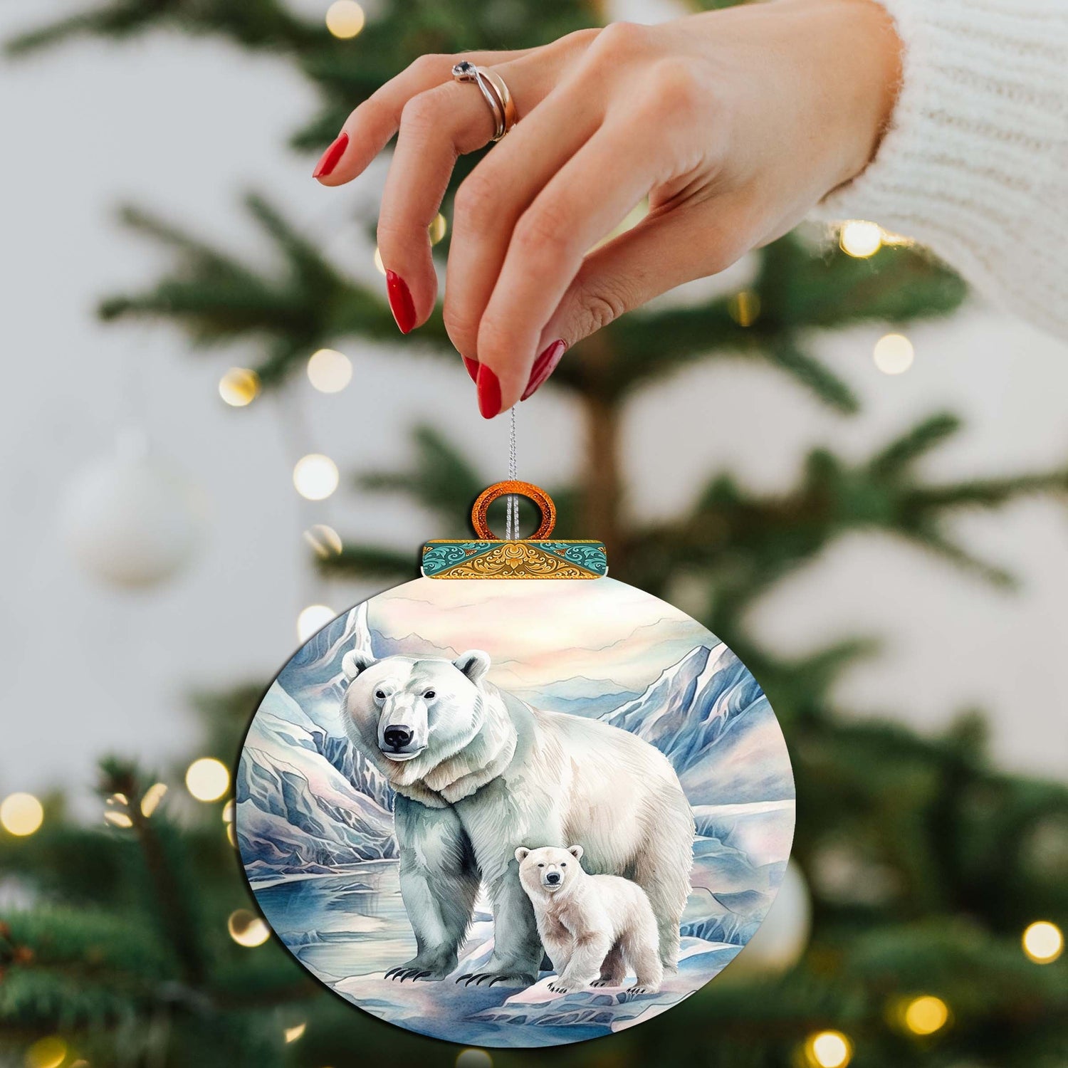Adornos de madera de oso polar en la nieve de G.Debrekht - Decoración navideña con temática de vida silvestre - 870049