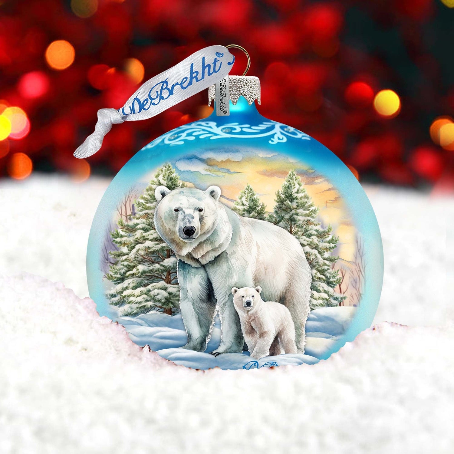 Adorno de cristal con forma de oso polar y cachorro de G. Debrekht - Decoración navideña con animales salvajes - 73386