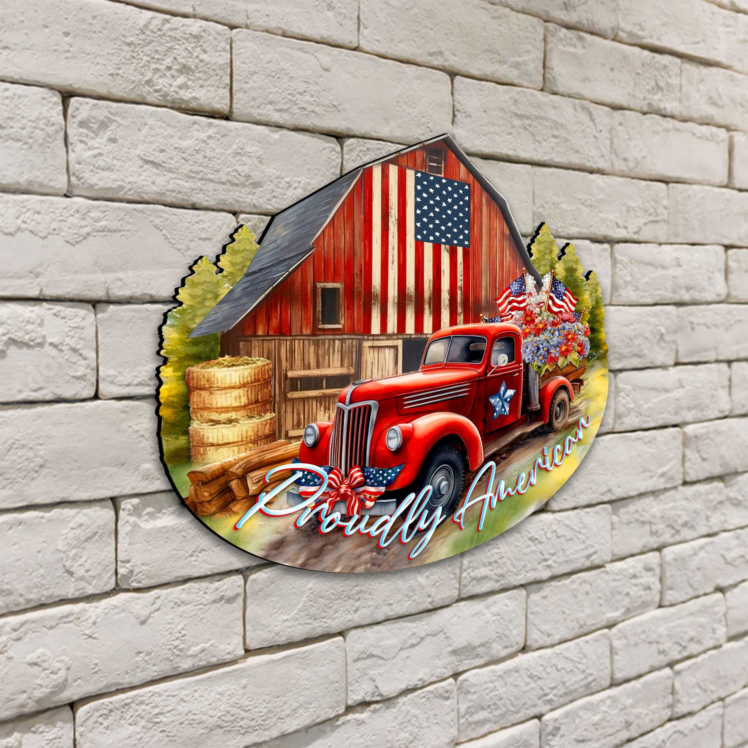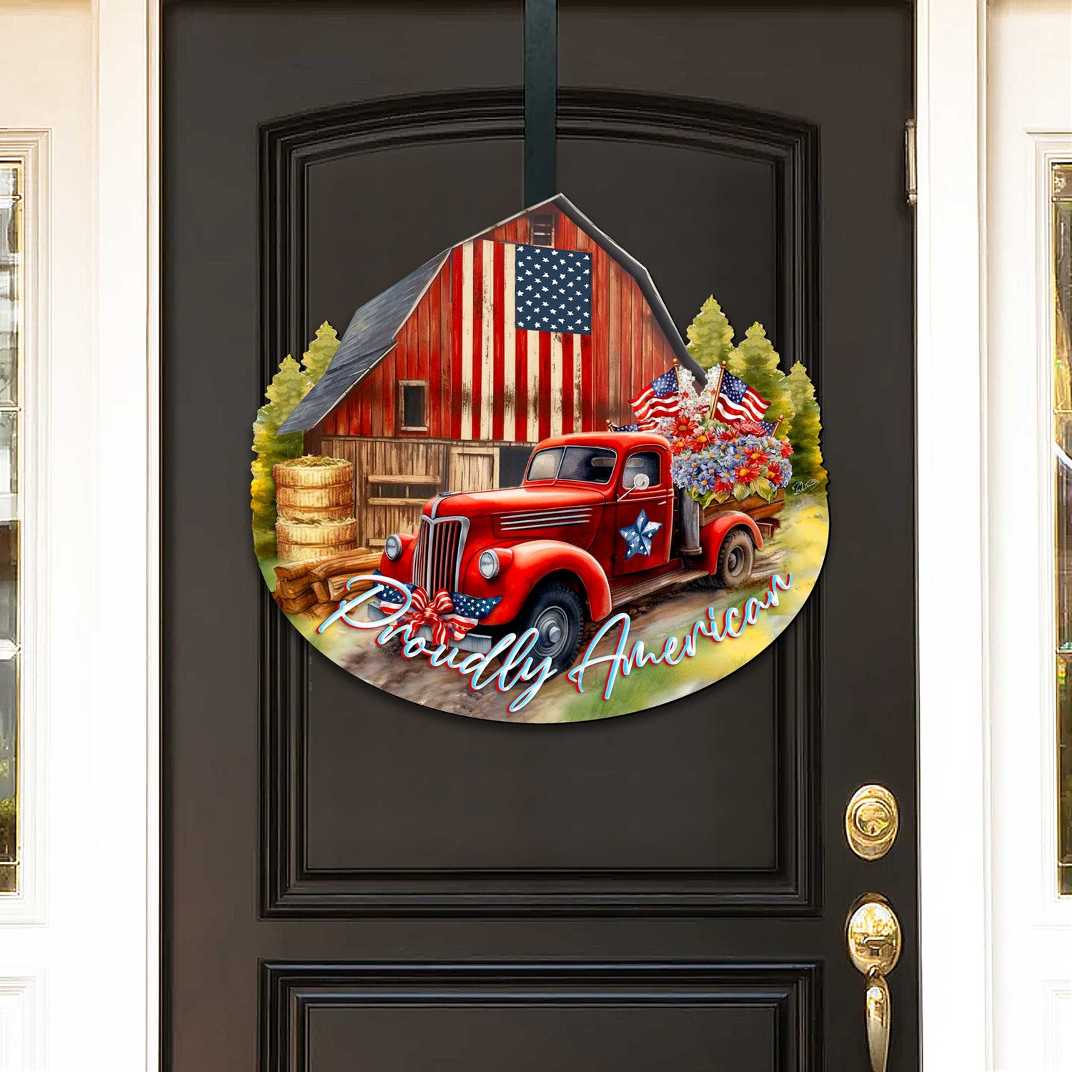 Dale un toque vintage a tu decoración navideña con la decoración para puertas Proudly American de G. DeBrekht. Esta pieza presenta un clásico granero rojo y un camión, añadiendo un toque nostálgico a tu hogar. Vive el espíritu navideño con esta pieza de hermosa elaboración.