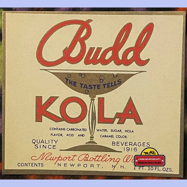 Rare Antique Vintage Budd Kola Label from 1920s Newport NH