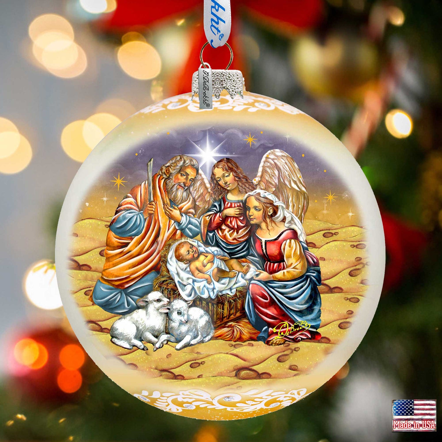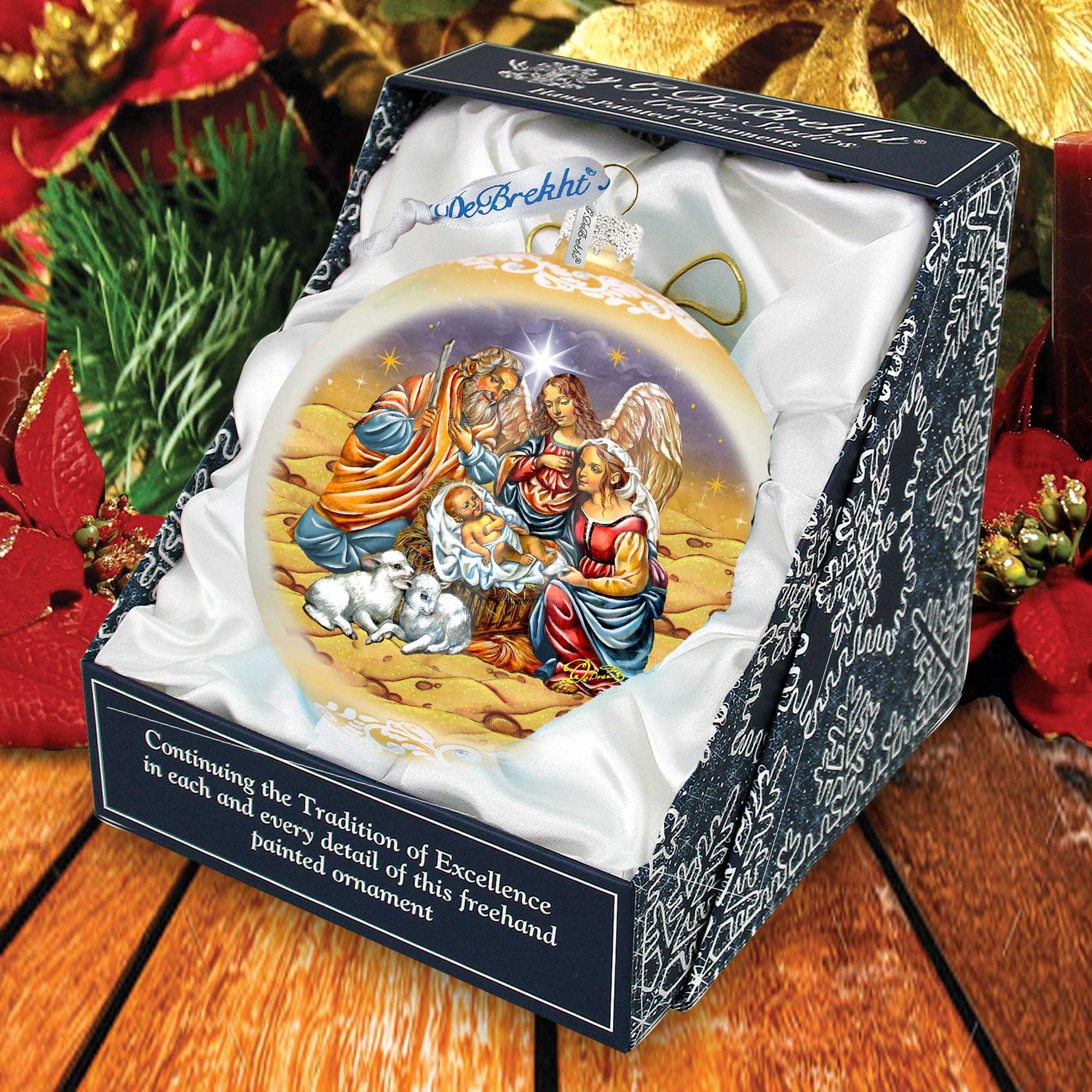 Acerca de la colección: Esta colección de esplendor navideño de edición limitada Se inspiró en una familia de Europa del Este del Viejo Mundo que, durante casi 200 años, pintó hermosas cajas miniatura de papel maché lacado con incrustaciones de nácar. Fueron necesarios años de perfeccionamiento de esta técnica para establecer esta nueva e innovadora forma de pintura que ahora presentamos con orgullo en nuestros exclusivos adornos de vidrio G. DeBrekht de tamaño aproximado: 5 x 5.5ƒ?. Como antaño, están hechas de vidrio de mercurio soplado a mano de 1.5 mm, con polvo de plata en el interior y luego arenado en el exterior. La combinación de colores y técnicas de pintura multicapa crea un profundo efecto iridiscente. Nos enorgullece perfeccionar cada pieza añadiendo toques de oro, rematándolas con una hermosa cinta de raso y presentándolas en una lujosa caja forrada de raso. Cada pieza está hecha a mano en EE. UU. y es única: una pieza que las futuras generaciones atesorarán.