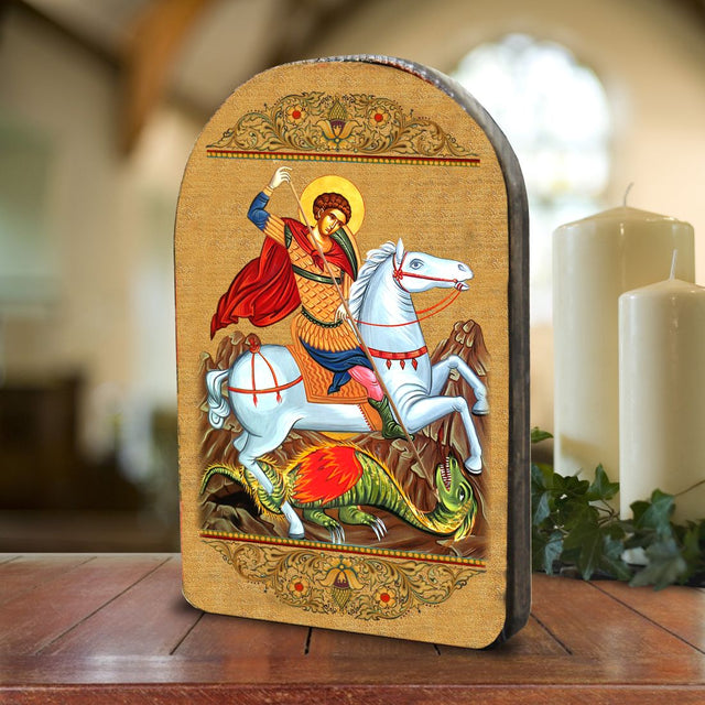 Compre San Jorge: el regalo perfecto para ocasiones y eventos especiales, como la Primera Comunión, la Confirmación, el Bautismo o el Bautizo. Explore nuestra extensa colección de iconos de monasterio, cruces y más hechos a mano en la Tienda Religiosa G. Debrekht.