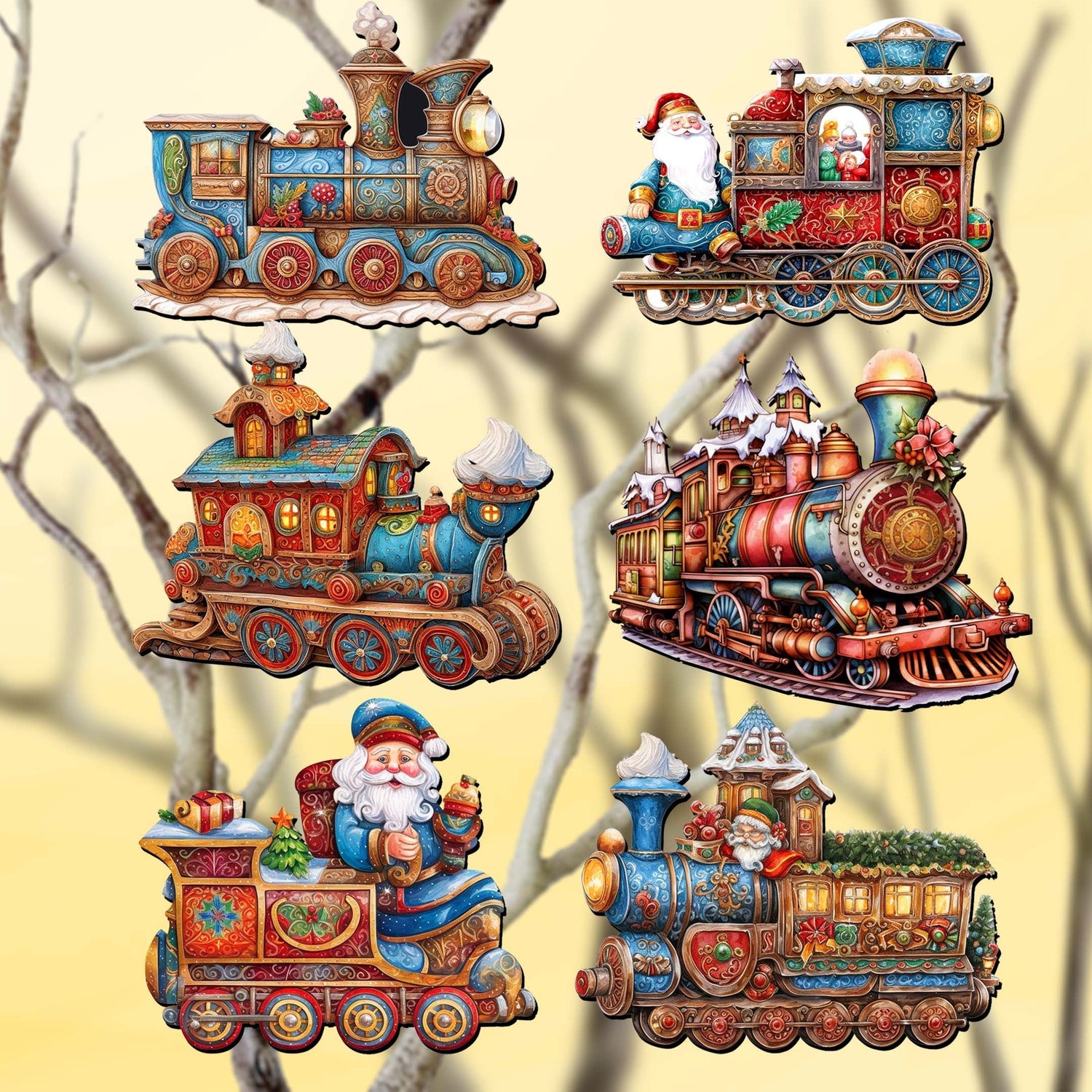 Dale un toque festivo a tu decoración navideña con los adornos decorativos de madera con forma de tren de Papá Noel de G. Debrekht. Este set incluye 6 adornos únicos de tren con temática de Papá Noel, perfectos para colgar en tu árbol de Navidad o para añadirlos a una decoración navideña. Elaborados con madera de alta calidad y bellamente pintados, estos adornos aportarán alegría y encanto a tus fiestas.