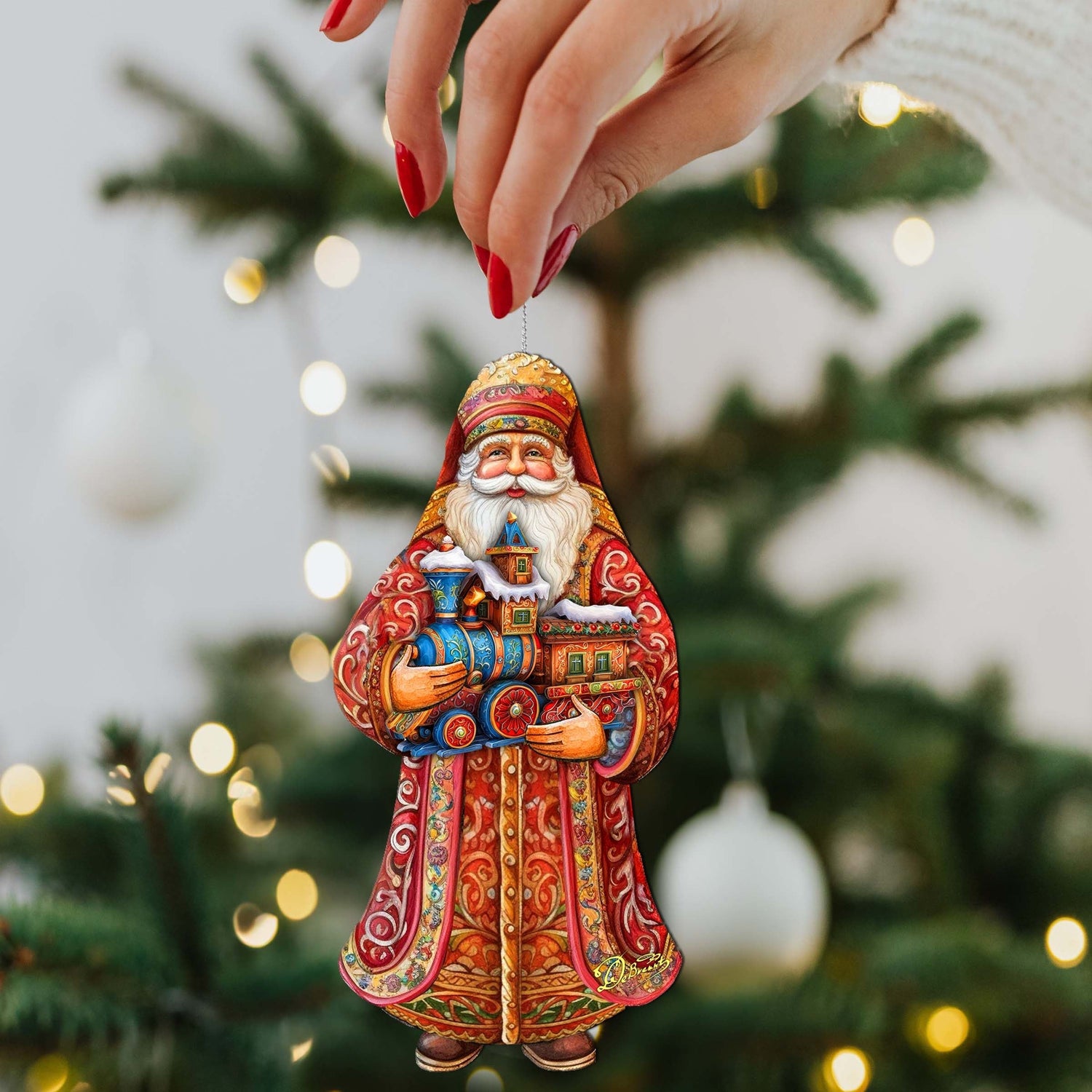 Realza tu decoración navideña con los adornos de madera en miniatura "Santa's Holiday Express" de G. Debrekht. Estos encantadores y elaborados adornos representan un tren navideño, añadiendo un toque de fantasía a tus decoraciones navideñas. Hechos a mano con precisión, estos adornos son imprescindibles para cualquier entusiasta de las fiestas.