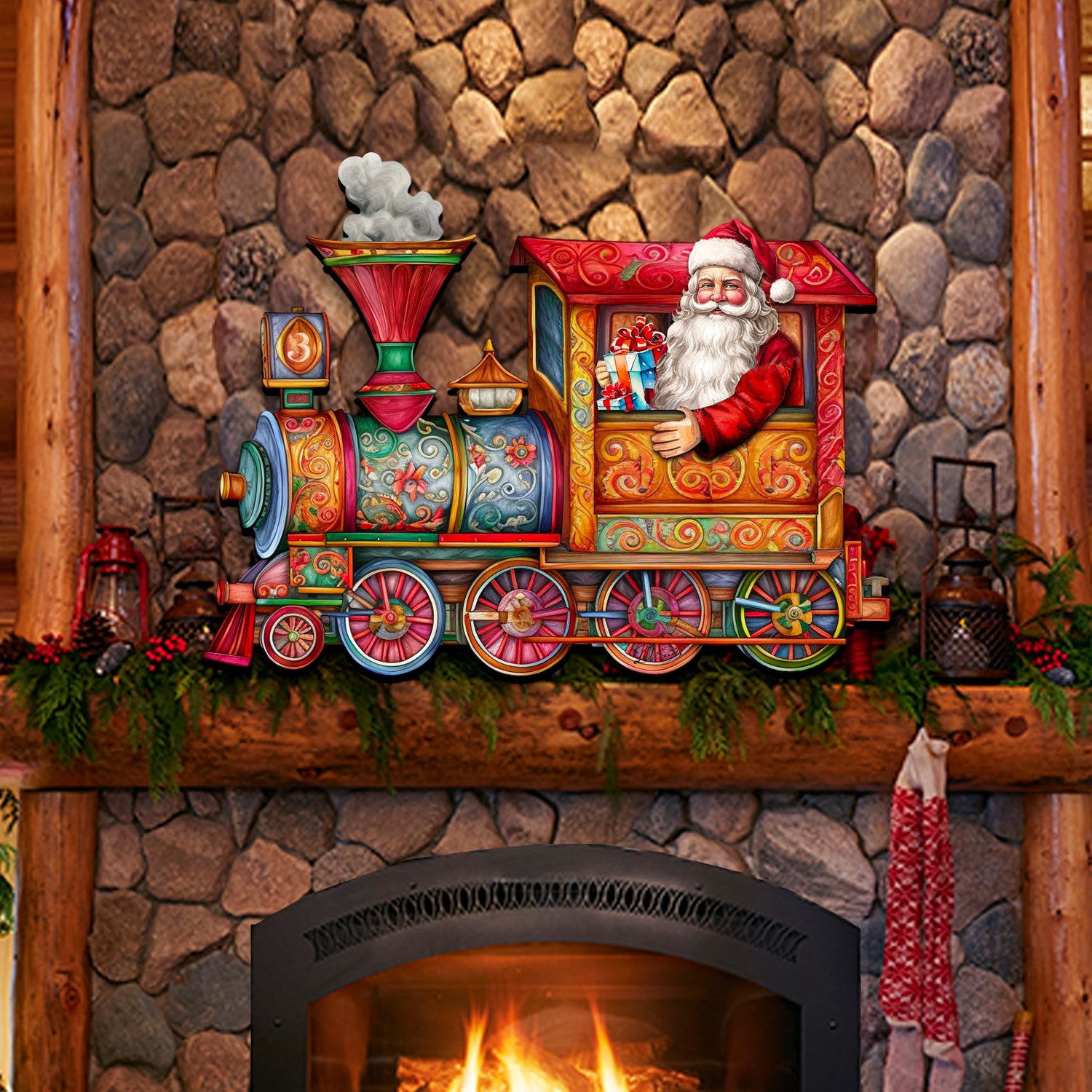 Decora tu puerta navideña con la hermosa decoración navideña del Tren de Santa Claus, hecha a mano. Los artesanos de G. Debrekht han elaborado cuidadosamente esta pieza única para que tu puerta luzca festiva y alegre durante la Navidad. Disfruta del detallado diseño de Santa Claus y el tren, que le dará un toque especial a la decoración de tu hogar.