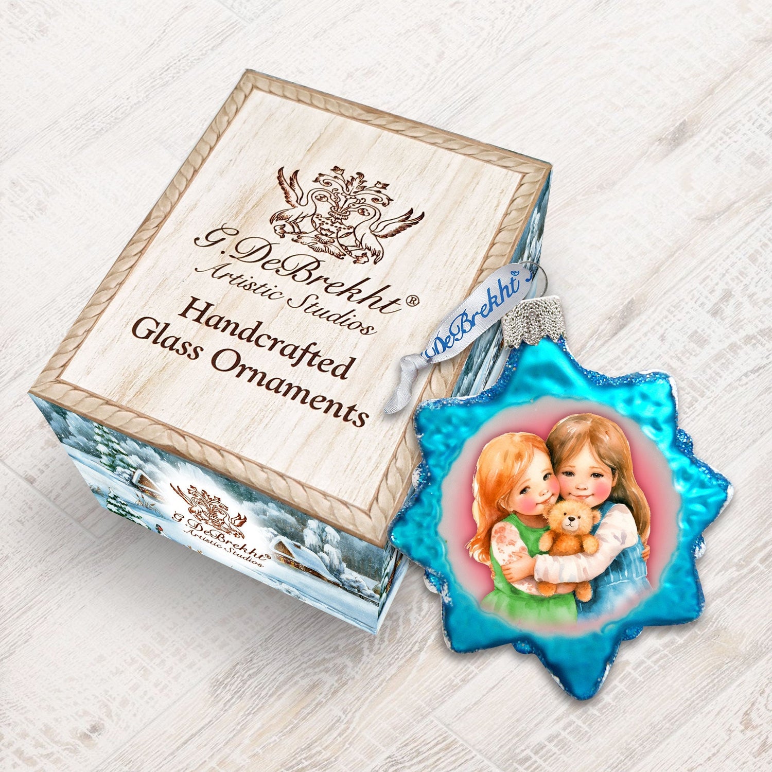Los adornos de vidrio de mercurio "Amor de Hermanas" de G. Debrekht reflejan la luz con su diseño tridimensional y acabado brillante. Perfectos para decorar tu árbol, estos adornos añadirán un toque festivo a tu decoración navideña.